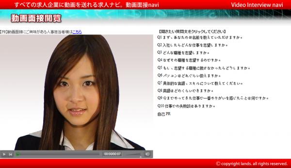 これまでの動画を使った求人サイト、テレビ電話を使った面接ツールとは一線を画し、質問ムービーを見てWEBカメラに回答し、その様子を自動録画編集して、マイページにて動画再生できるというもの。