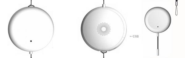 防犯ブザーを鳴らす場合:ブザー本体から、ひもを引っ張ります。ブザーが鳴り、動画が撮影されます。