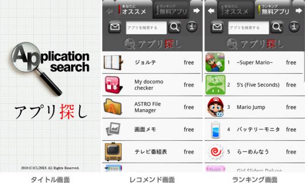 ・アプリ探し : http://www.clinks.jp/service/develop/android/apps/appsearch/
