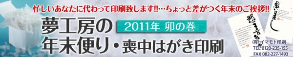 今回発表する『年賀状販売サイト「夢工房【2011年賀状印刷】卯の巻~ちょっと差がつく年賀状~」 にて【年末便り】販売開始』は、次の通りである。