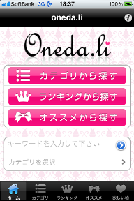 「oneda.li」は、女性が欲しい商品を検索して「おねだり」機能を使うと、彼氏や旦那様など親しい人に“おねだりメール”を送信できる、エンターテイメント性の高いiPhoneアプリケーションです。これからのシーズン、クリスマスプレゼントのおねだりにも最適です。