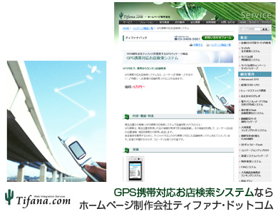 「GPS携帯対応お店検索システム」パッケージの詳細は、弊社ホームページ(http://www.tifana.com/package/mobilegps.html)をご覧ください。