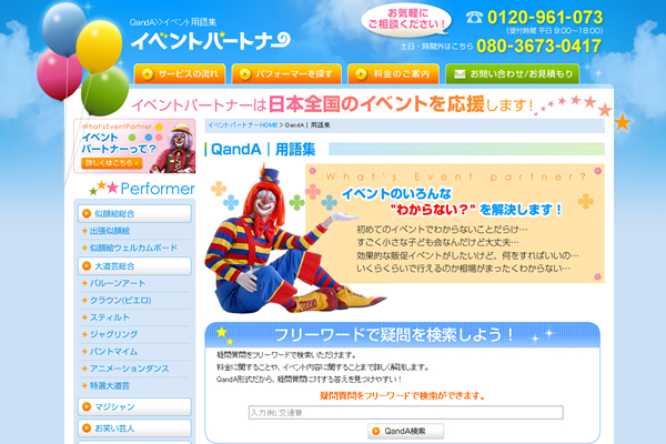 ・ 大道芸人・似顔絵師・マジシャン・ケータリングカー等のイベントへの派遣出張サービスサイト