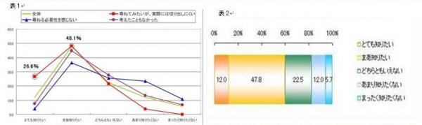 ある調査では、保険について「尋ねてみたいが、実際には切り出しにくい」と答えた人の中で、「とても知りたい」「まあ知りたい」と答えた人は74.7%(表1参照)、