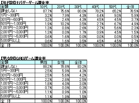 またGREE利用者に対して「1ヶ月の課金金額」について聞いたところ、女性の20%以上が課金していることがわかり、男性に比して10%も課金率が高いと驚くべき結果となった。GREEの課金を支えているのは、実は女性ユーザーなのかもしれない。