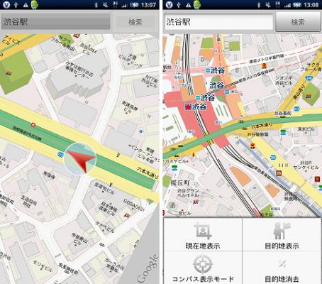 しめすクンはGPSより取得した現在地を表示する「地図モード」と、ユーザーが登録した目的地を指し示すコンパスが表示され地図が回転する「コンパス表示モード」を特徴としており、現在地からどの方向に目的地が存在するかが明確に把握出来るナビゲーションアプリとなっています。