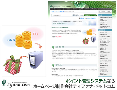 ティファナ・ドットコムが提供する「ポイント管理システム」パッケージをご利用いただくことにより、「ECサイトで購入者にポイントを付与し、貯まったポイント数に応じてプレゼントを贈呈」、「SNSや掲示板、アンケートで有効な書き込み、回答を行った方にポイントを付与し、貯まったポイントを商品と交換」といったポイントサービスをWebサイトを通じて提供することが可能になります。