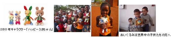 お客さまには、当社が販売する型紙などの参加キットをご購入いただき製作していただきます。2010年は、「未来に向かってジャンプしよう」をテーマにした「ハッピーうさちゃん」がキャラクターです。