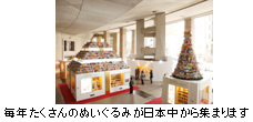 みなさまに手づくりしていただいたぬいぐるみは、世界中へ旅立つ前に、クリスマスの時期にツリーに展示し、お披露目をしています。