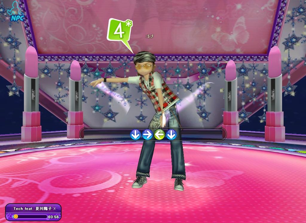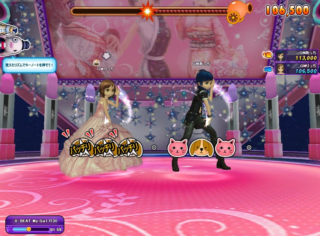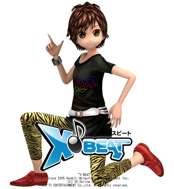 『X-BEAT』は、韓国T3 ENTERTAINMENT 社が開発し、「Audition」という名称にて世界各国で大勢のプレイヤーに楽しまれているオンラインダンスゲームです。音楽にあわせて画面に表示される矢印の通りにカーソルキーやテンキーを押す簡単な操作のみで、キャラクターが多彩なダンスを踊ります。