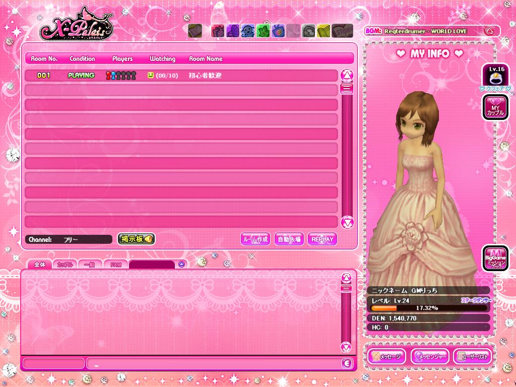 「X-Palais」のステージは“ルージュ”や“コンパクト”などをモチーフとし、ルーム、ロビー等はピンク色を基調とした、今までの『X-BEAT』にはない女性向けデザインの新ステージです。オンラインゲームが初めての女性でもお楽しみいただけるように、シンプルなシステムで遊びやすくなっています。