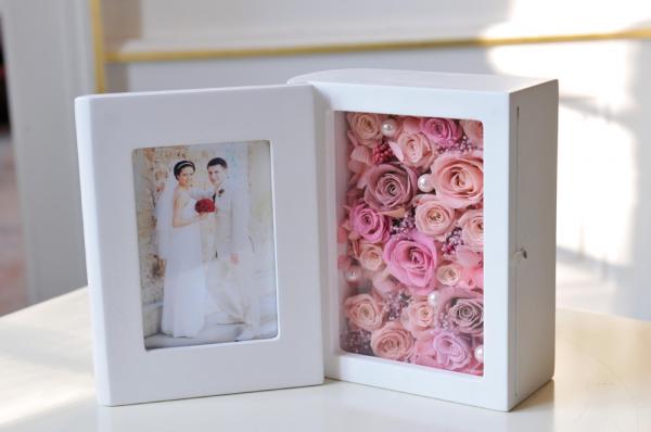 大切な思い出写真と素敵なお花のコラボレーション。ギフトとして手渡すときのカタチにまでこだわったフレームは、「メモリアル」ギフトにも最適です。