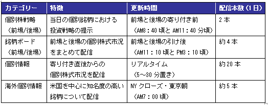 「個別株コメント」では、当日の具体的な銘柄における短期の投資戦略を提示する「個別株戦略」や、米国を中心とした海外の個別株式市況をお伝えする「海外個別株情報」など4つのカテゴリーにおいてニュースを配信してまいります。配信するニュースは、株式会社T&Cフィナンシャルテクノロジーズ(東京都港区)が提供しております。
