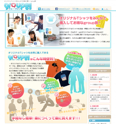 オリジナルTシャツ共同購入サイト『group割』 http://groupwari.com/ は5枚以上で注文成立に変更になりました。