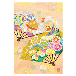 カード」。日本の風俗が鮮やかなラメ加工や箔押しなどで彩られ、海外のお客様に