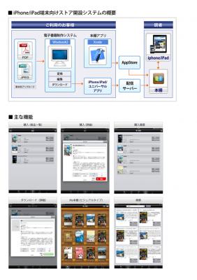 同社の電子書籍ストア開設システムは、アプリ配信サーバーと端末上で動作する本棚アプリがセットになっており、書籍コンテンツ提供者は短時間・低コストで電子書籍ストアが開設可能です。