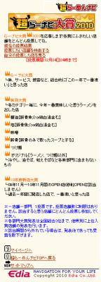 2005年から毎年実施しており、今年で6回目となる『らーナビ大賞』は、らーナビに会員登録をしているらーめんファンの投票により、その年のもっとも人気の高かったラーメン店を決定します。