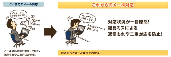 しかし、複数担当者がお客様からのメールに対応する場合、従来のメールソフトでは、他の担当者の対応状況がリアルタイムに把握できず、「対応もれ」や「二重対応」などのミスが発生してしまうケースが多く見られます。