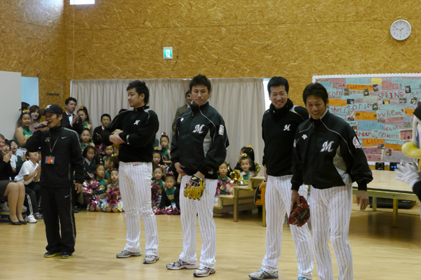 児童たちからは日本シリーズを制した千葉ロッテマリーンズへのお祝いの言葉とチア・リーディングチーム「ドルフィンズ」のスペシャルパフォーマンスも披露され大いに盛り上がりました。