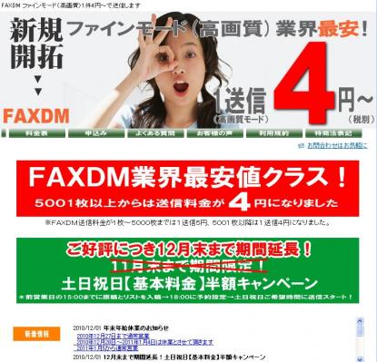 FAXDMを土日祝日送信の場合は基本料金を半額とさせて頂きます。