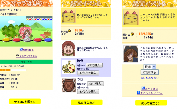 商品を店に並べたり、商品を欲しいユーザーに売ることで、GP(ゲーム内通貨)を稼ぐことができます。