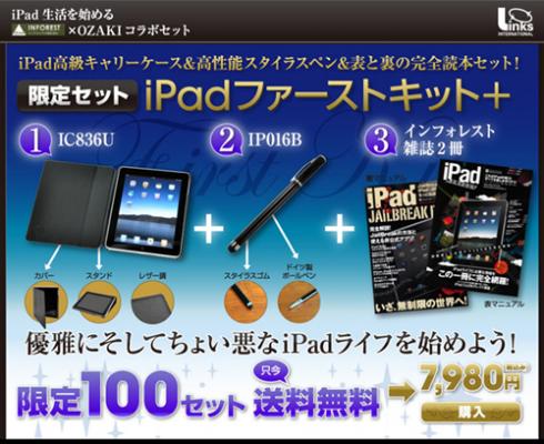 インフォレスト株式会社のiPad専門誌とOZAKIのiPad周辺機器製品のセットモデルです。2010年12月3日より、リンクスWEBショップにて限定100セットを販売いたします。販売価格は7,980円(税込み)です。送料は無料です。