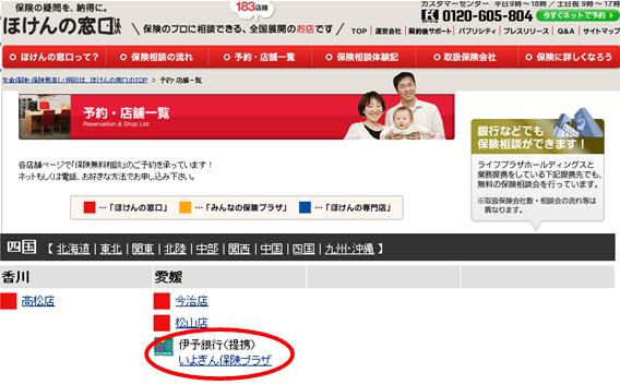 「ほけんの窓口」ホームページ「予約・店舗一覧」内に「いよぎん保険プラザ」を追加