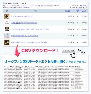 オークファン落札データが誰でもかんたんにダウンロードでき、