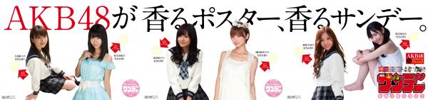 『少年サンデー』(毎週水曜日発売)では、2・3合併号(12/8発売)、4・5合併号(12/22発売)、6号(1/4発売)の3号連続で、AKB48のメンバーが好きな香りがついた、香りつき写真付録を実施します(毎号2枚)。人気メンバー6名の写真それぞれに、メンバーが選んだ「好きな香り」が香料付き特殊インクにて付けられております。