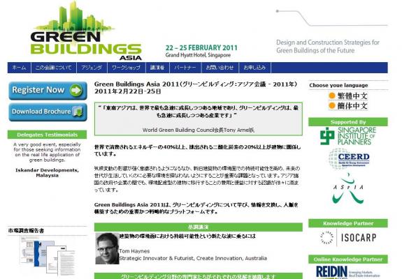 「Green Buildings Asia 2011 (グリーンビルディング:アジア会議-2011年)」の情報を提供するとともに、会議の参加のお申し込みを承っております。