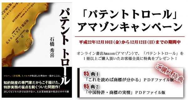 特許実務の盲点を突いた経済小説『パテントトロール』発売を記念し、12月10日(金)~12日(日)の期間中、