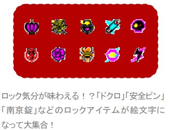コンテンツ内容:ロック気分が味わえる!?「ドクロ」「安全ピン」「南京錠」などのロックアイテムが絵文字になって大集合!