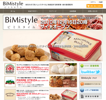 株式会社ピュアーズワンは、2010年12月15日より高感度食品に特化した、新たな独立系通信販売サイト:ビミスタイル(美味しいスタイル)をサイトオープン致します。