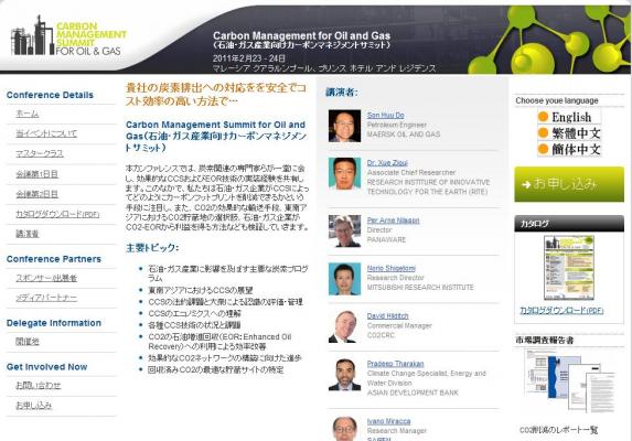 「Carbon Management Summit for Oil and Gas(石油・ガス産業向けカーボンマネジメントサミット)」の情報を提供するとともに、会議の参加のお申し込みを承っております。