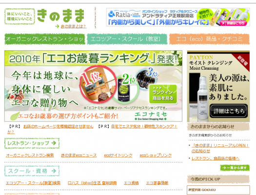 オーガニックレストラン・環境(エコ)情報ガイド「きのまま」にて、