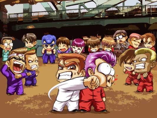 原作の主人公、くにおくんは熱血高校3年生で一般的な視線でみたら不良学生だ。しかし、仁義に生きる正義の味方でもあるため、周りの学生たちには憧れの的になっている。残念ながら誰もがヒーローにはなれない。くにおくんをはじめ主な登場人物たちはゲームの中でユーザーを助けてくれるキャラクターとして登場する。ユーザーはある日、危険なところをくにおくんに助けられ、彼に憧れたあまり熱血高校に転校してきた転校生という設定でゲームを始める。