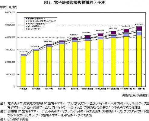 非接触IC型電子マネーを見ると、流通系では、グループ外への加盟店拡大や地域通貨としての地域活性化の取り組みが奏効、交通系では駅周辺から市中への加盟店開拓強化に加え、交通系の相互間利用の推進など、いずれもユーザーの利便性の向上を図っていることなどから市場は順調に拡大している。