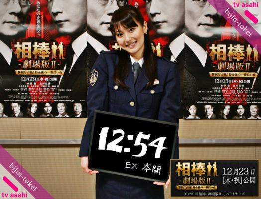 連動企画の第1弾は、映画 「相棒 -劇場版II-」 のプロモーションとして、テレビ朝日系列局の女子アナウンサーが婦警姿で「テレビ朝日版美人時計」に登場。3日後に控えた映画公開へのカウントダウンを印象づける施策として、プロモーションを盛り上げていきます。