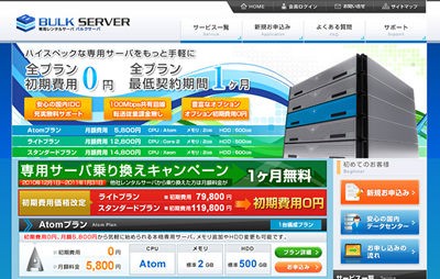 初期費用0円、月額費用5,800円、最低利用期間1ヶ月という手軽さで多くのお客様にご好評頂いております、「BULK SERVER」の低価格プラン、『Atomプラン』のハードディスク容量を価格据え置きで320GBから500GBにスペックアップいたしました。
