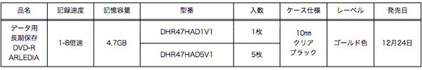 三菱化学メディア株式会社(本社:東京都港区、社長:大塚重徳)は、Verbatim(バーベイタム)ブランドで、長期保存DVD-Rの「ARLEDIA(アルレディア)」を本日から発売します。当社では、今年9月から、全製品においてMITSUBISHIからVerbatimへの切り替えを開始しており、「ARLEDIA(アルレディア)」についても新ブランドで販売するものです。