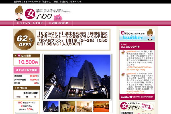 ジャパンプリント株式会社が運営する、女性がトクするクーポン共同購入サイト「女子わり」がいよいよ本日12時よりサービス開始いたします。