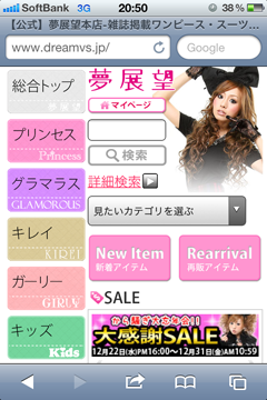 ファストファッションの大規模オンラインショップ「夢展望」本店(iPhone向けサイト)