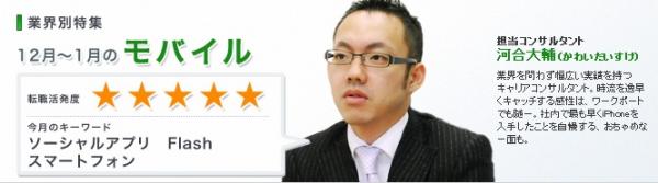 スマートフォンに関連する求人の増加は確実で、モバイル業界全体の活発な採用活動を主導していくことになるでしょう。また、Web開発エンジニアの活況は、ITエンジニアにとってWeb開発スキルが今後必修の技術となることを感じさせます。言語力・コーディング力といった実際の開発力で勝負したい方には好機となりそうです。