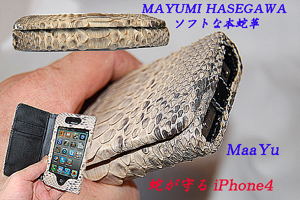 とてもソフトなダイヤモンドパイソンを1枚革でiPhone4全体を包み込みました。