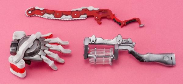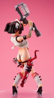 「半裸の少女が謎の武器を持つ」という井上氏のコンセプトを緻密に立体化している。付属装備はノコギリソード、リボルバー注射器、仕分けハンドの3点。ソードとリボルバーは右手に持たせることが出来、仕分けハンドは右手首を差し替えることで装備できる。ベルトはホルスターになっており、右はノコギリソード、左はリボルバー注射器を挿すことができる。