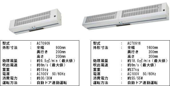 ■2wayエアカーテン 自動ドア連動型(W900とW1,600の2タイプ)