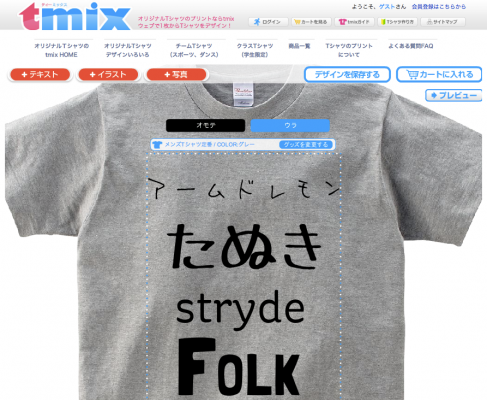 ウェブでかんたんデザイン!オリジナルTシャツデザインサイトtmix(ティーミックス)