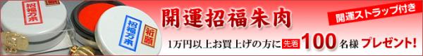 一万円以上の印鑑をお買い上げの方に「開運招福朱肉(開運ストラップ付き)」を先着100名様へ