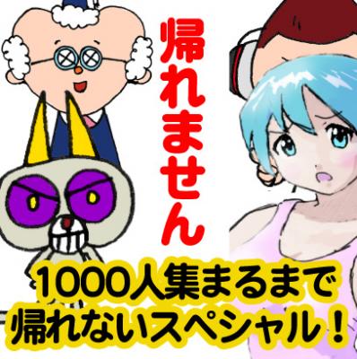2011年になり、出演者、スタッフにより出されたのが「1000人達成するまで放送を止めなければいい」というアイデア。強引ではありますが、確実に目標を達成できる企画ということで、新年最初の放送回(1月5日)に、「ニコ生視聴者数が1000人いくまで“帰れま1000人”」と題し放送されました。