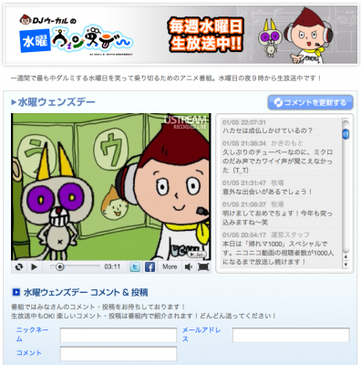 次回の「水曜ウェンズデー」は、1月12日21時から、以下のサイトで生放送します。